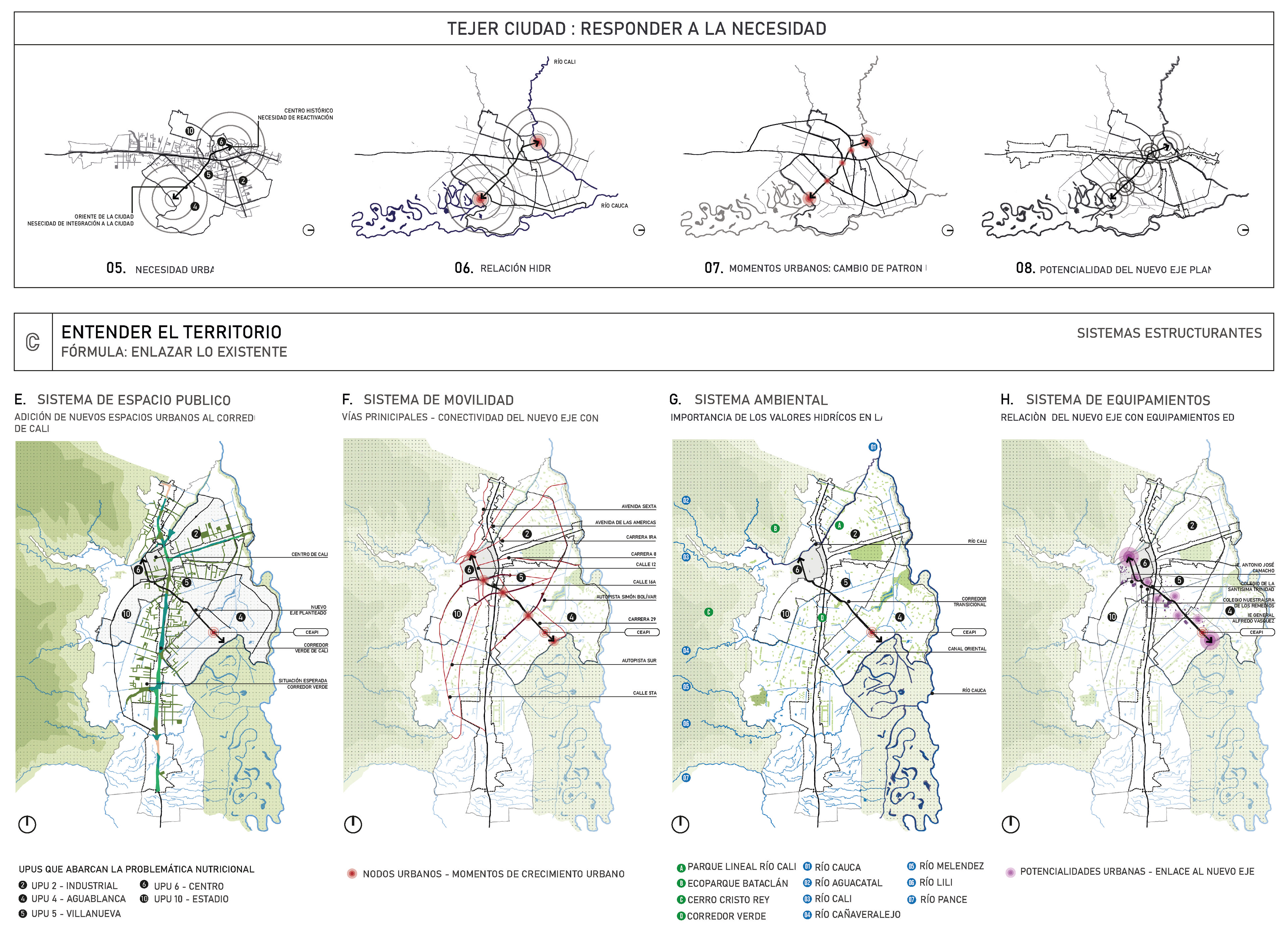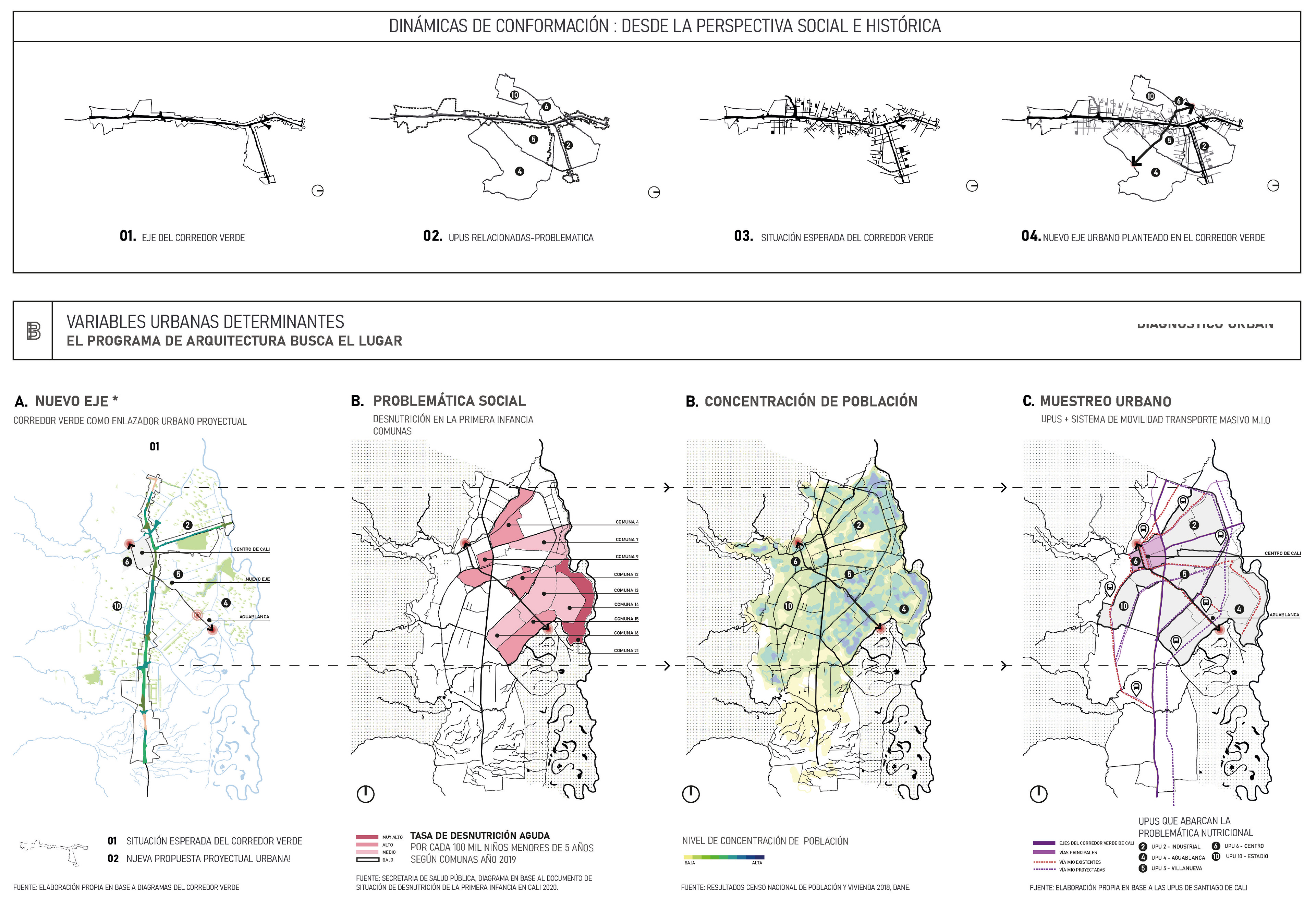 New transversal Axis through Green Corridor of Cali, Colombia. Analyze a city from a social problem to propose new urban dynamics according to the existing situations.